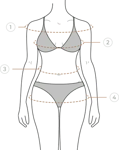 Passe a fita métrica ao redor da parte mais larga do seu busto e abaixe os braços para os lados para medir.
