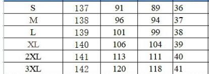 Tamanho (cm) Comprimento da peça Circunferência do peito Comprimento da manga