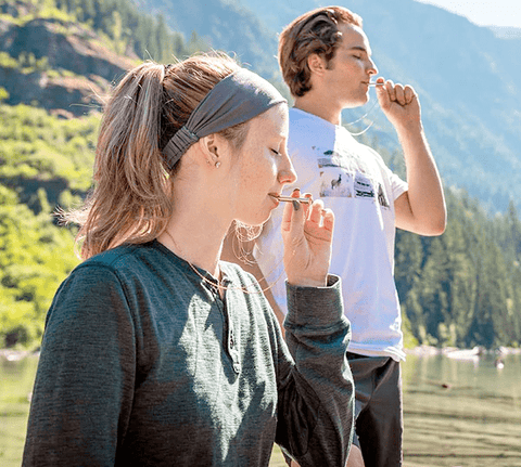 A inspiração prolongada imita a fixação oral. proporcionando uma sensação familiar semelhante a dar uma "tragada".