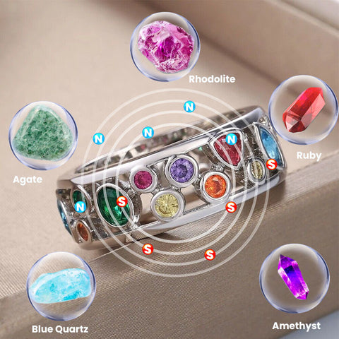 O anel de cristal de quartzo Enéas utiliza a orientação alternada da polaridade norte-sul para maximizar o fluxo do campo magnético, ao mesmo tempo que liberta carga electromagnética para assegurar que os blocos em redor do corpo são removidos e o fluxo natural de energia é restaurado.