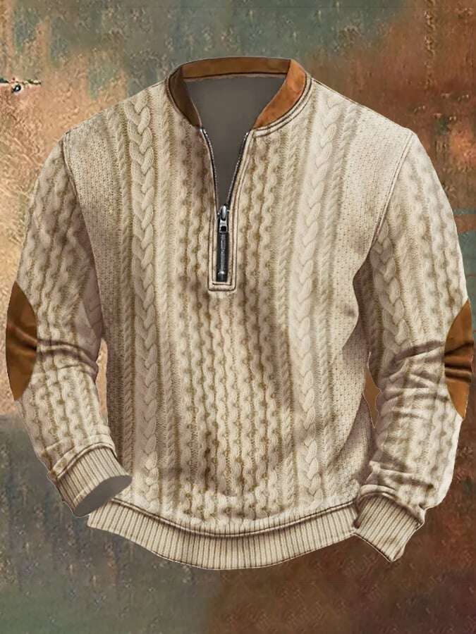 Moletom com capuz vintage de malha com zíper para homens