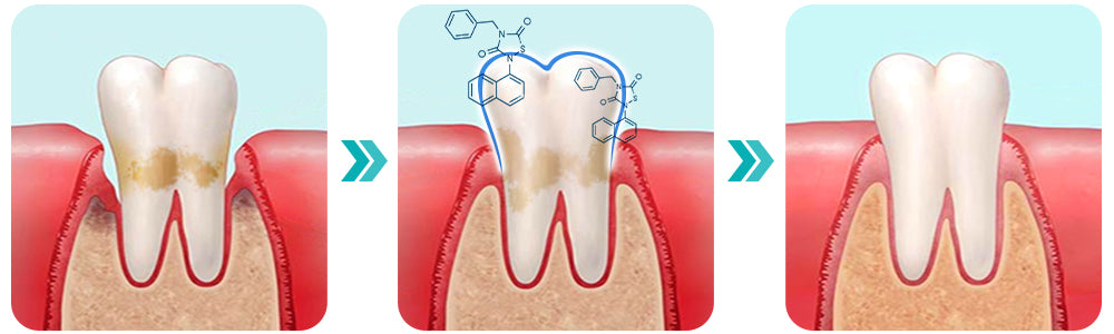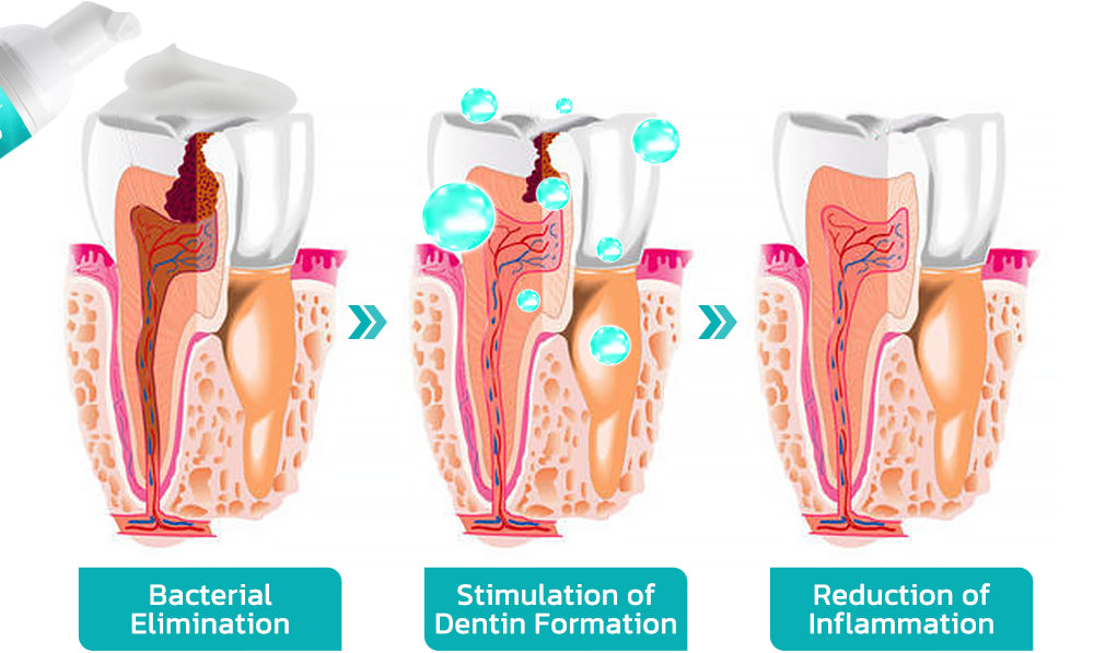 Neutralizáciou hlbokých baktérií v alveolárnej a koreňovej dutine. Ústna voda Furzero™ Smartsmile stimuluje tvorbu výplňového dentínu. pomáha pri obnove zubného kazu. V prípadoch ťažkých dutín. podnecuje ďasná k tvorbe nových zubných zárodkov. podpora rastu nových zubov.